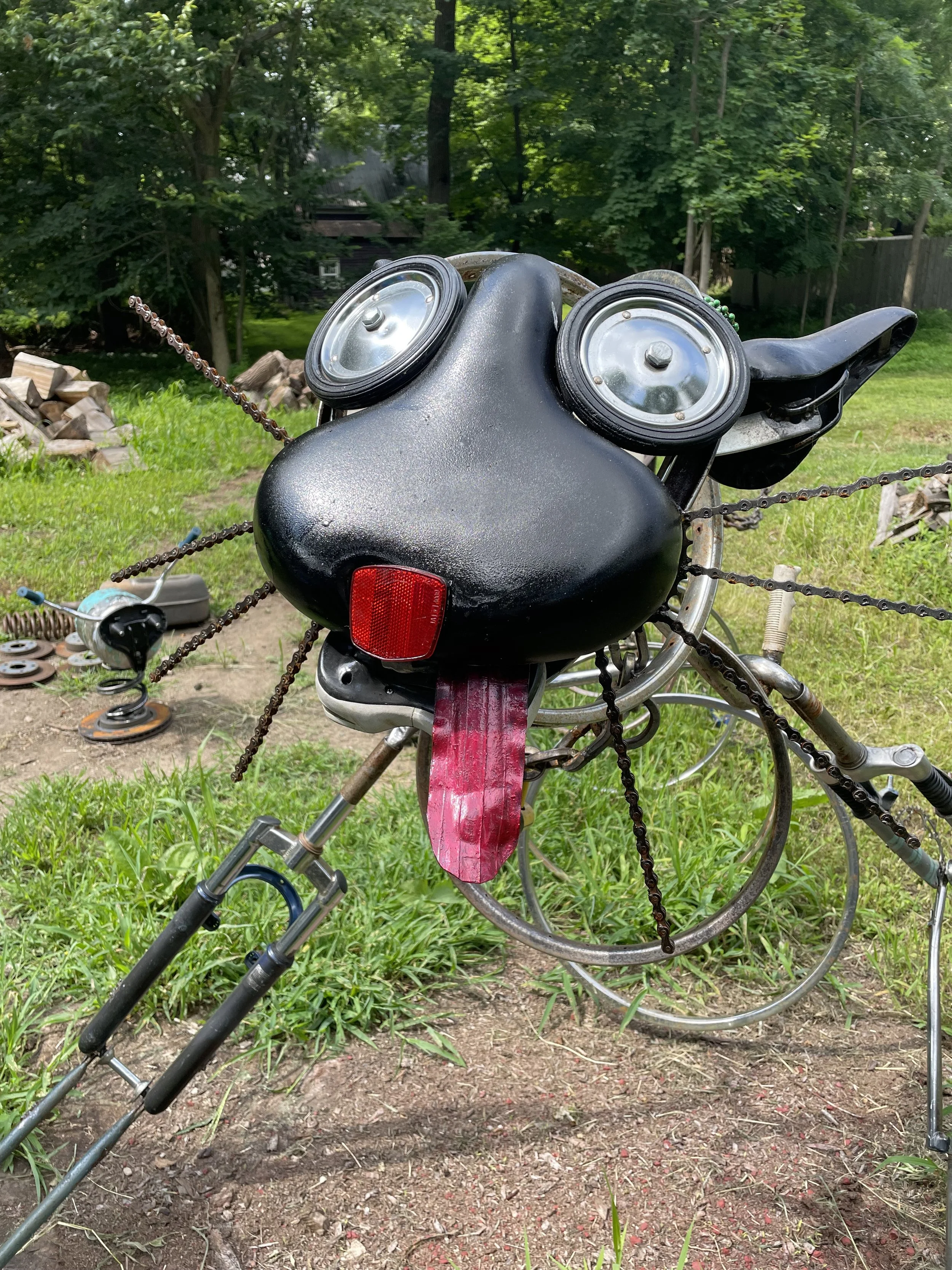 About the Artist: Andy Finney is a skilled carpenter, fabricator and welder, and an artist inspired by things that others overlook. A graduate of the North Carolina School of the Arts, Andy worked in the entertainment industry, onstage and behind the scenes. He found his passion while assisting other artists with metal fabrication and welding. He now works from his “shop” in the backyard of his home in Warwick, doing his part to make junk fun and art not so serious in a serious way. He lives for the ah-ha moment when he spots a creature - or Andymal - in a discarded machine piece.